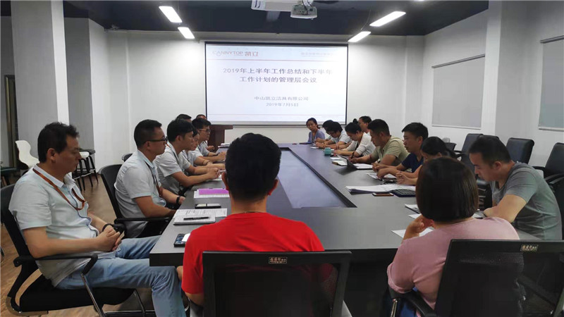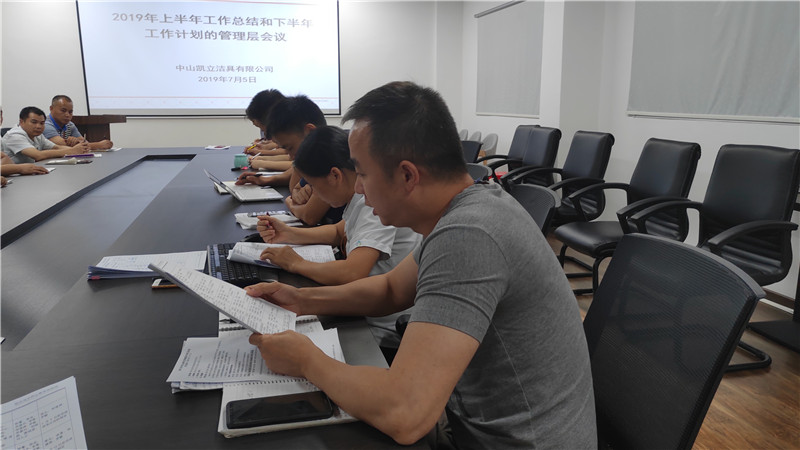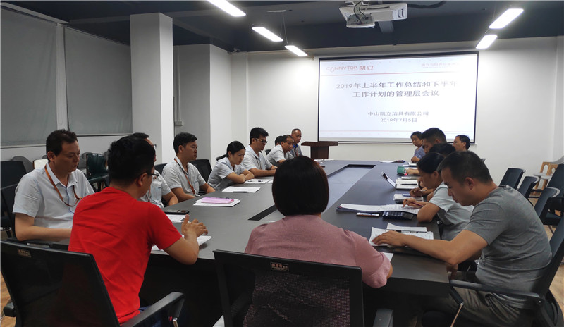 2019年7月5日晚上18:30-22:00,凱立淋浴房召開2019年度上半年工作總結及下半年工作計劃的管理層會議。公司各部門副主管級以上管理干部、總經理助理、副總經理&董事長助理、董事總經理、董事長參加了本次會議,會議貫徹落實了今年上半年工作總結和下半年重點工作部署。